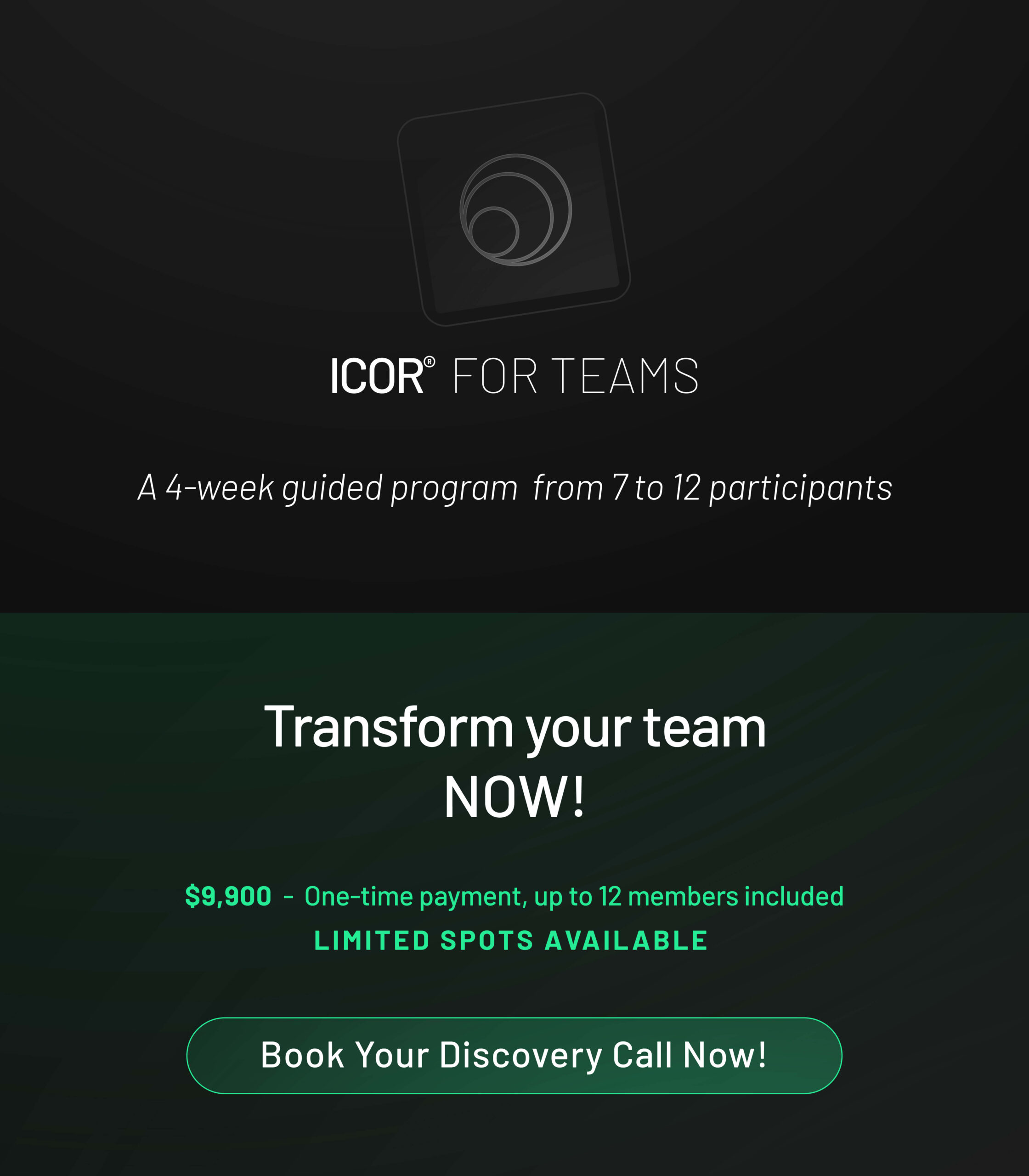 ICOR® for Teams is a carefully structured, high-impact program designed to fit into your team’s demanding workflow without adding extra stress.
